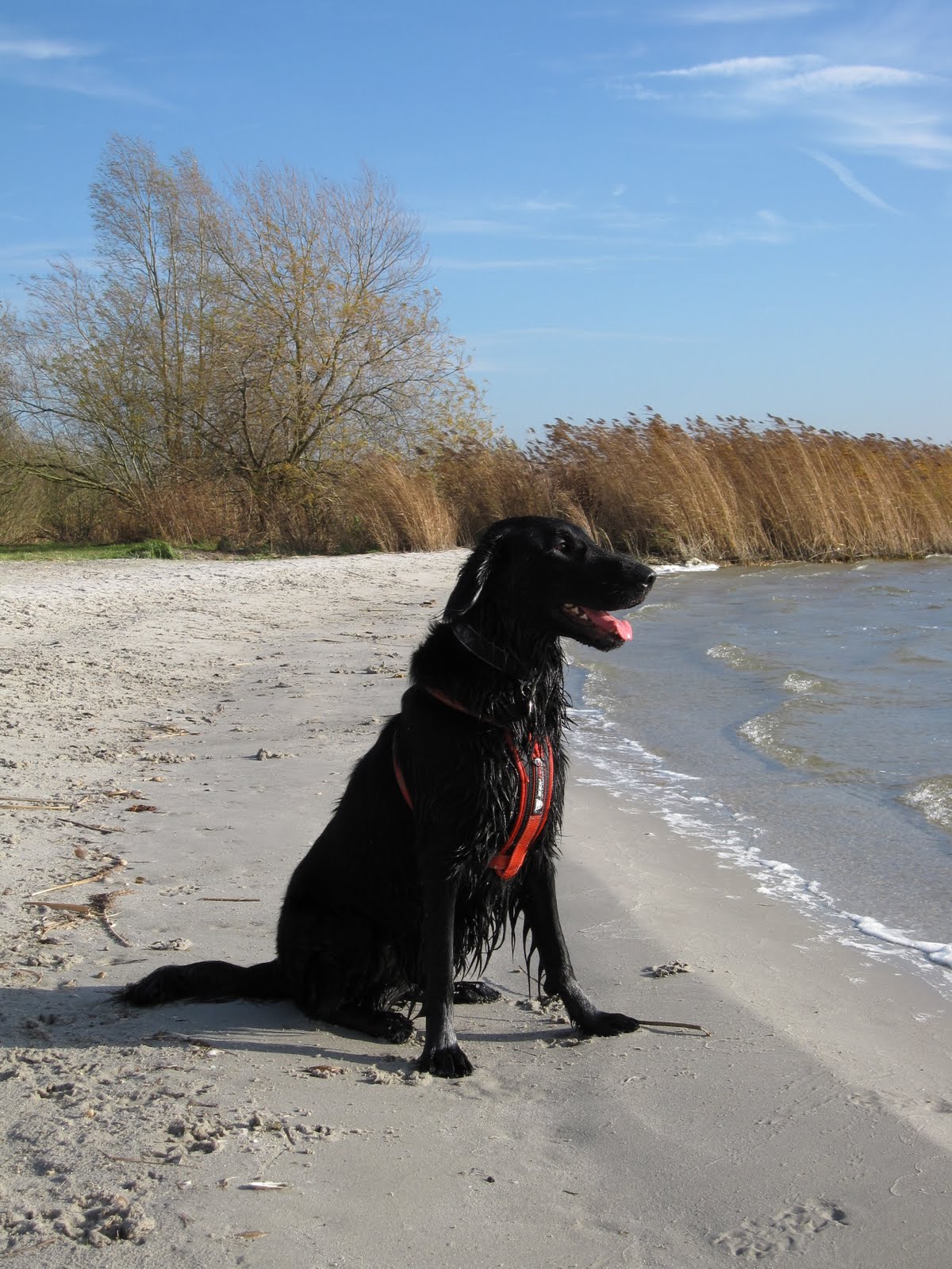 Heerlijk spelen met een andere hond. Lekker door het water banjeren. Vrouwtje wat een bal weggegooit...wat wil een hond nog meer...